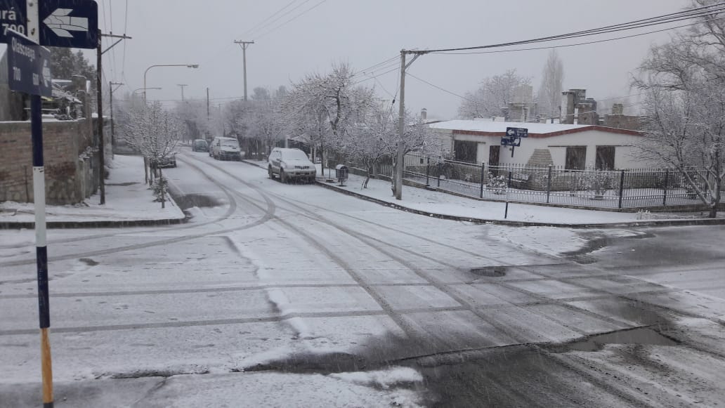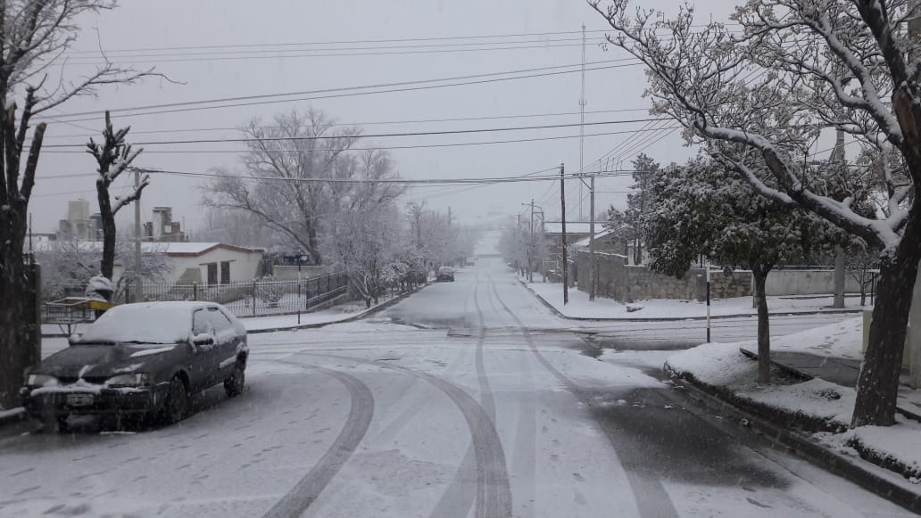 En esta localidad se juntaron alrededor de 10 centímetros de nieve. El intendente Gabriel Álamo informó que no hubo cortes en el suministro eléctrico y que cuentan con reservas de gas y combustible.