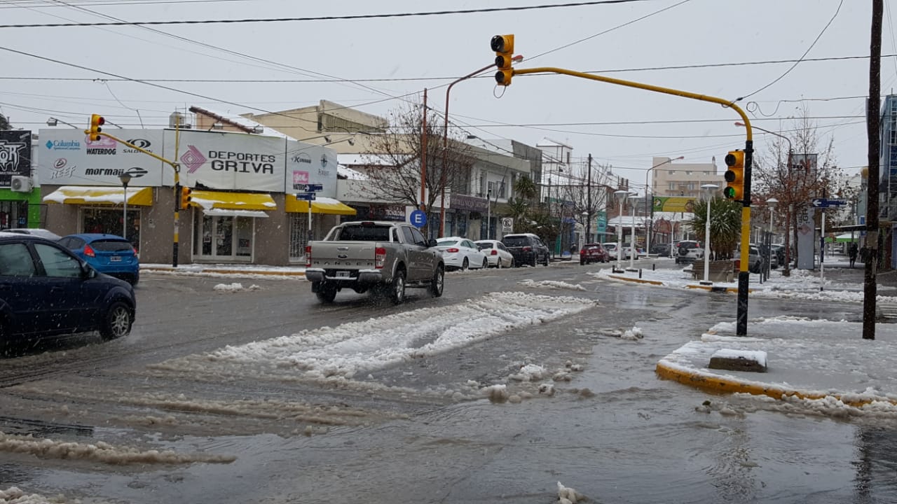 La complicación es el anegamiento de las calles. Si bien la nieve con la cantidad de lluvia se disipó las calles se tornan muy complicadas.