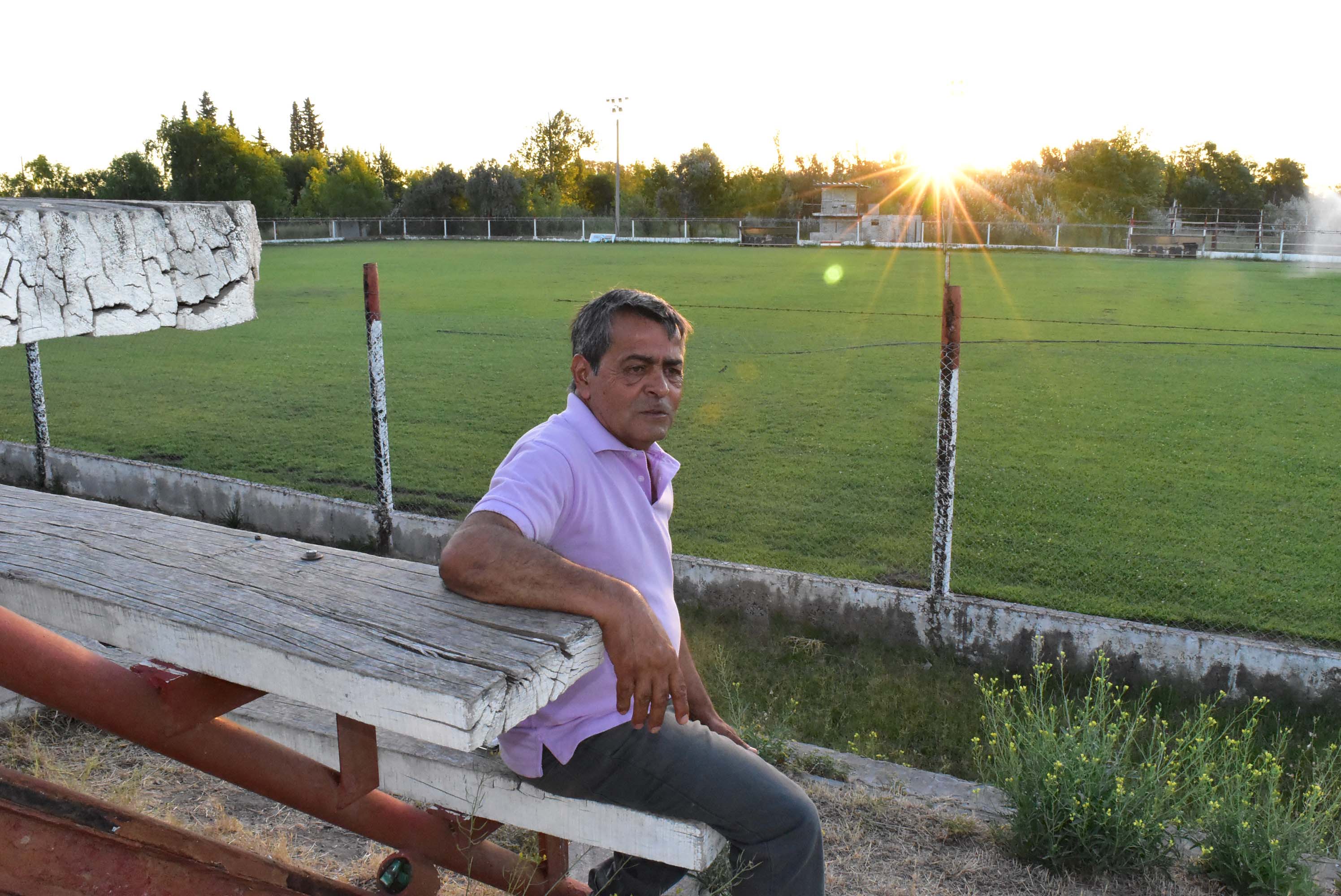 Dice que pasa más de 12 horas diarias dentro de las instalaciones, haciendo trabajos de mejoras, cortando y manteniendo el césped de la cancha, ocupándose de lo que sucede con los distintos grupos de trabajo. Además de estar pendiente de las necesidades que arrastra cada uno de los que se suman a defender los colores del club en cada partido.