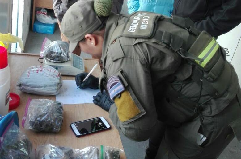 En un control de rutina en un micro de larga distancia, la Gendarmería encontró dos paquetes de marihuana escondidos en un termo y otros siete en un bolso de mano. El procedimiento que se realizó en Dina Huapi terminó con la detención de dos personas oriundas de Buenos Aires.