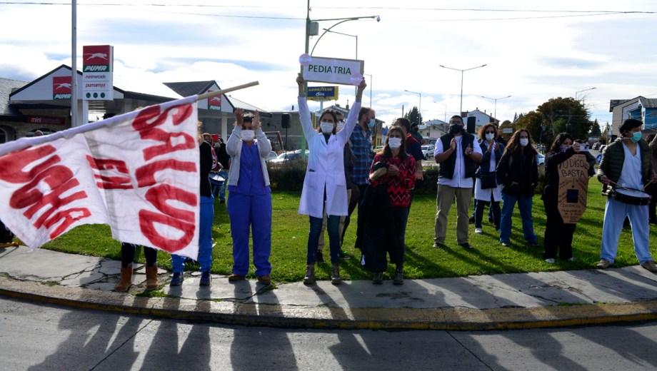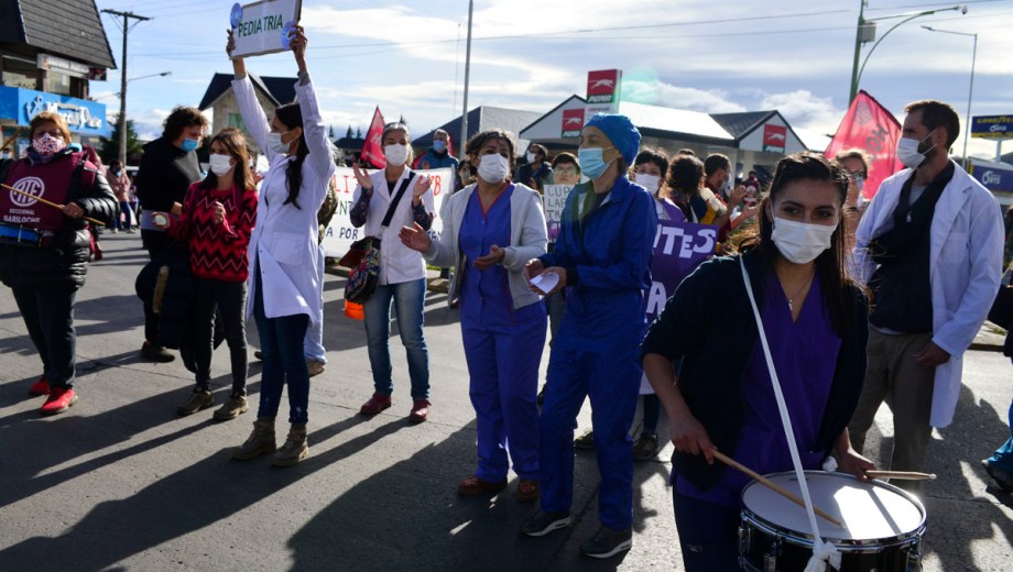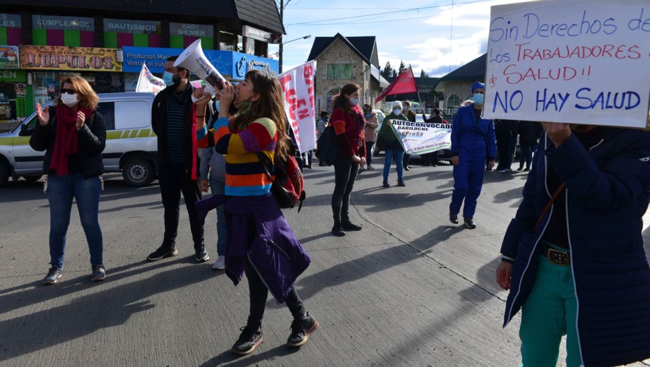 Unos 200 médicos, enfermeros, técnicos y administrativos marcharon por calle Moreno hasta la rotonda del Ñireco donde realizaron cortes de tránsito intermitentes. De esta forma, endurecieron los reclamos.