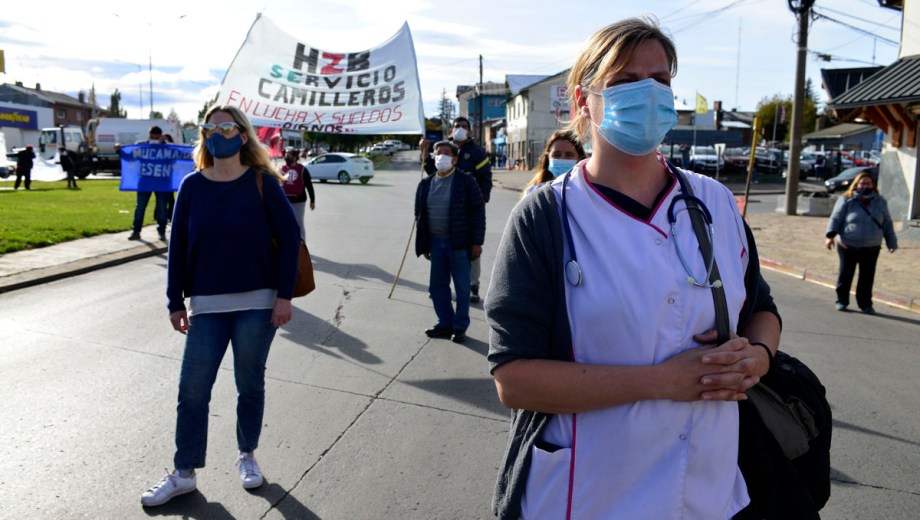 De esta forma, médicos, enfermeros, técnicos y personal administrativo del hospital Ramón Carrillo endurecieron las medidas de fuerza en la ciudad que concentra la mayor cantidad de casos de Covid-19 en la provincia. Hasta ahora, sólo se habían limitado al corte de la calle Moreno por algunos minutos, con una movilización al Centro Cívico, pero las recientes declaraciones de la gobernadora Arabela Carreras en Bariloche respecto a que no habrá aumentos para el sector de la salud hasta septiembre, caldeó aún más los ánimos.