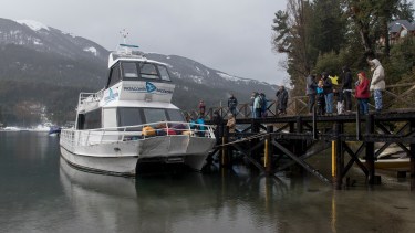 Hoy un catamarán realizó el recorrido desde Puerto Manzano, en La Angostura, hasta Brazo Huemul. Desde ese punto viajan por transfer al aeropuerto de Bariloche.