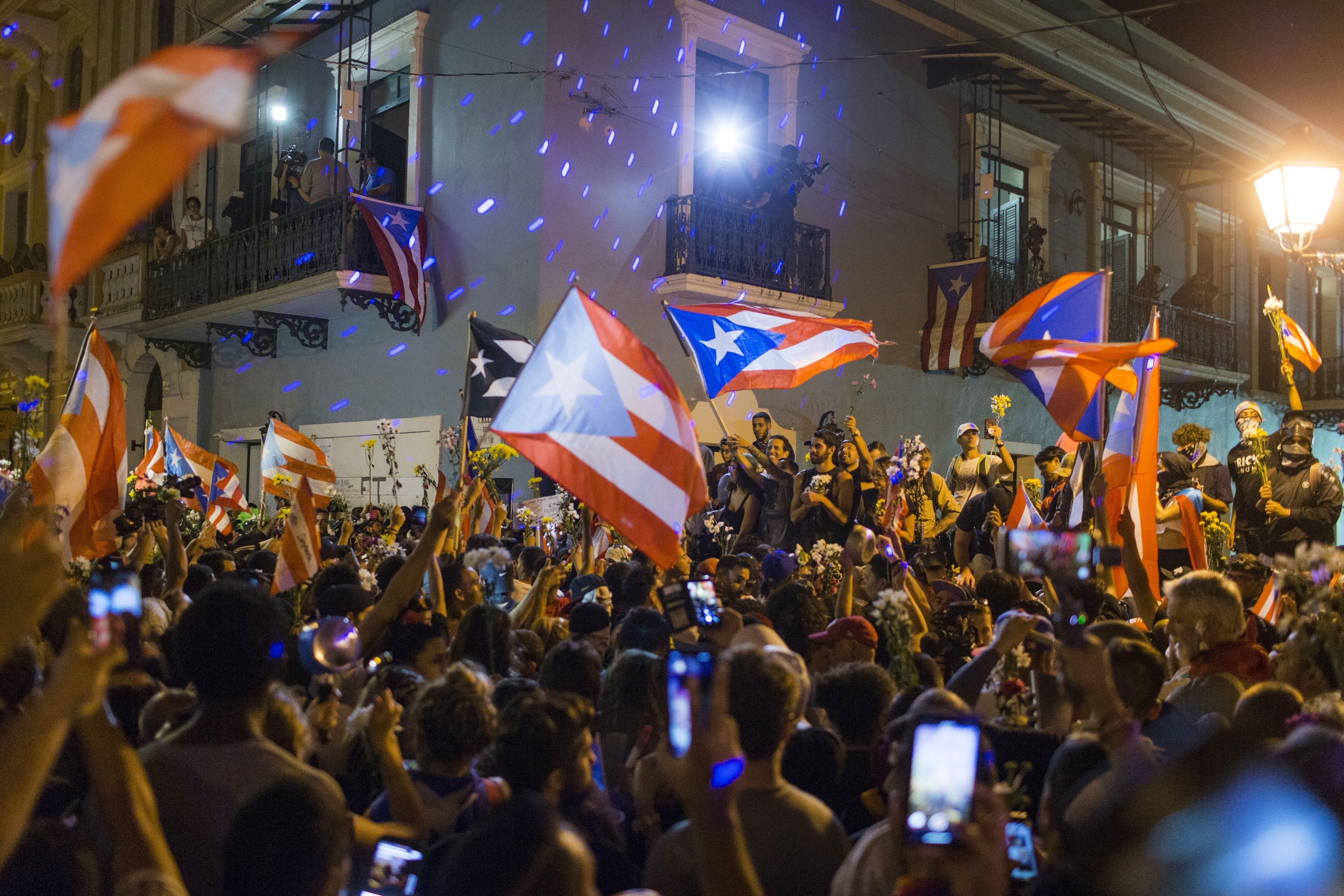 Inmediatamente se escuchó la algarabía y los «olé olé olé» de cientos de puertorriqueños que protestaban a las puertas de La Fortaleza, la casa de gobierno, y que se quedaron bailando en el casco viejo de San Juan hasta la noche.