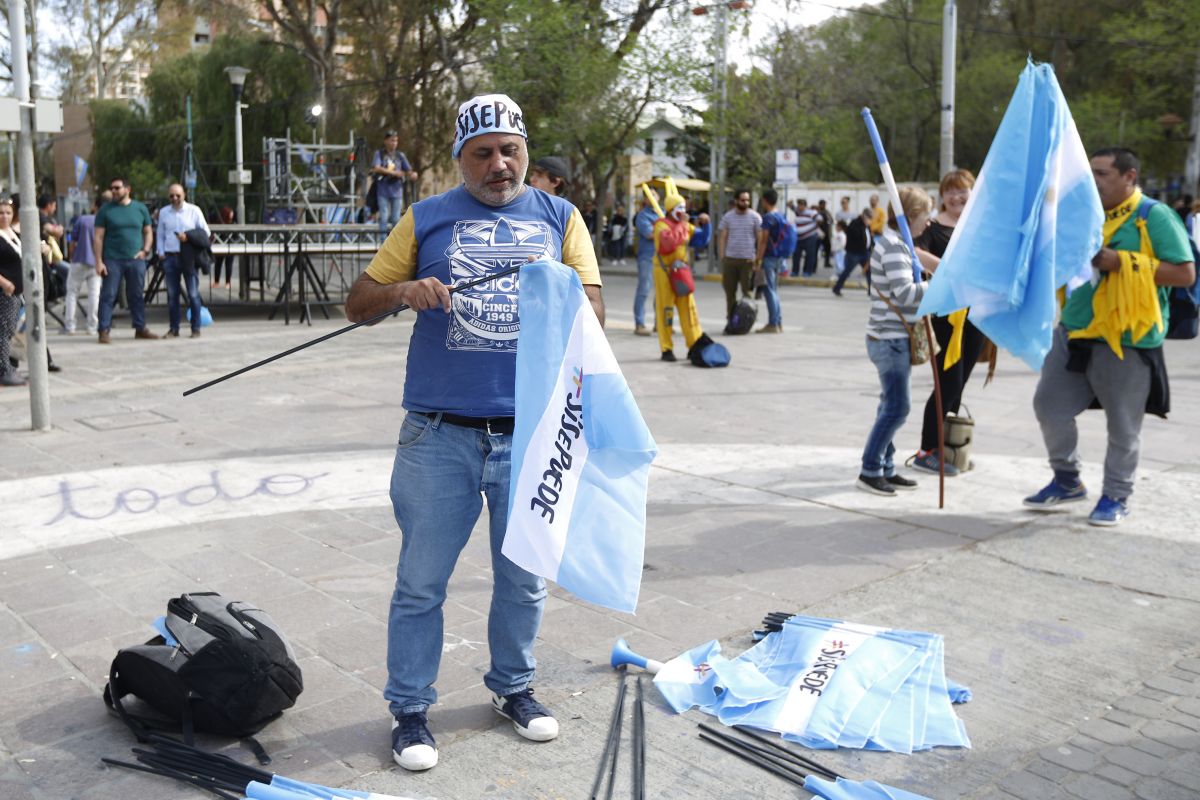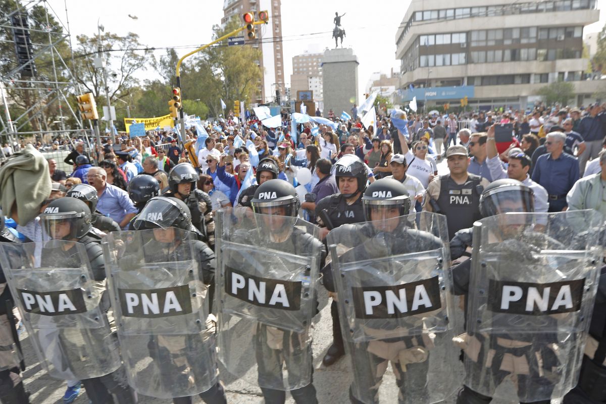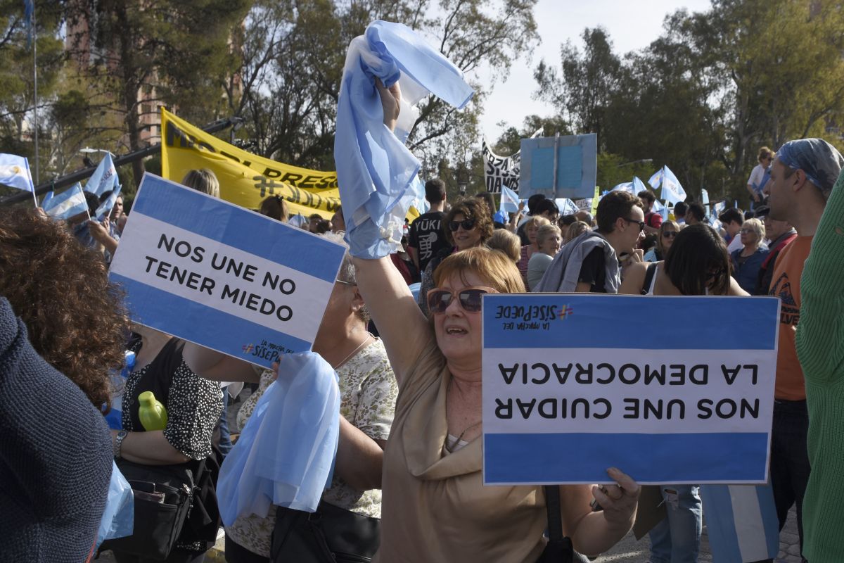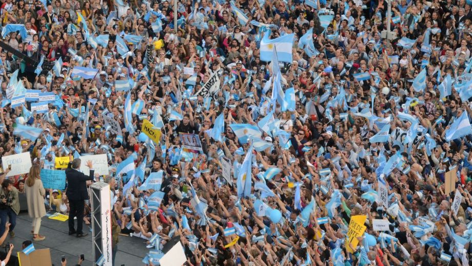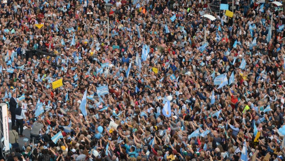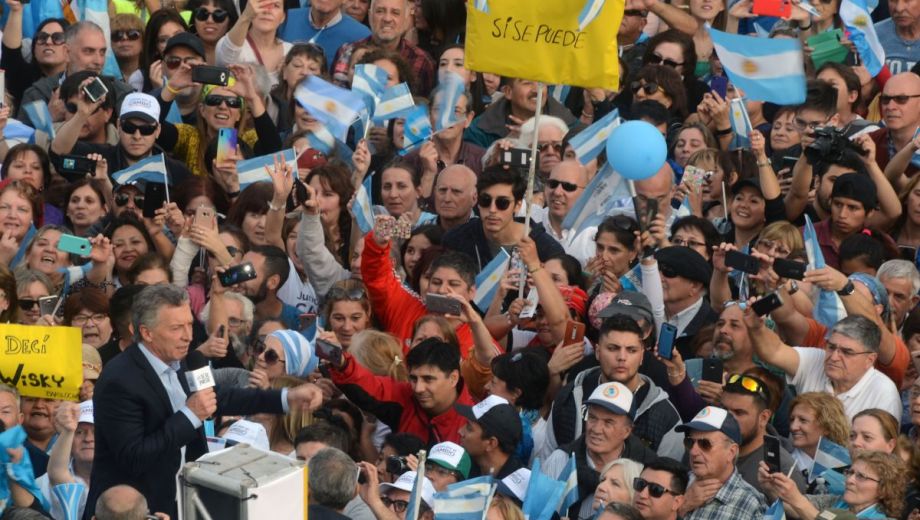 El presidente habló durante poco más de 17 minutos. La mayoría de los simpatizantes se concentraron sobre la plazoleta en el monumento a San Martín. Foto: Juan Thomes