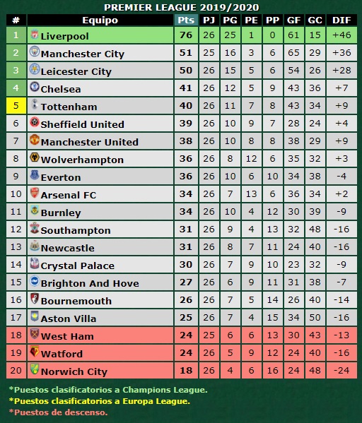 El United quedó a dos puntos de Tottenham (quinto, en puesto de Europa League) y a tres de su rival de ayer, cuarto en la tabla y el último de los que está entrando a la Champions 2020/2021.