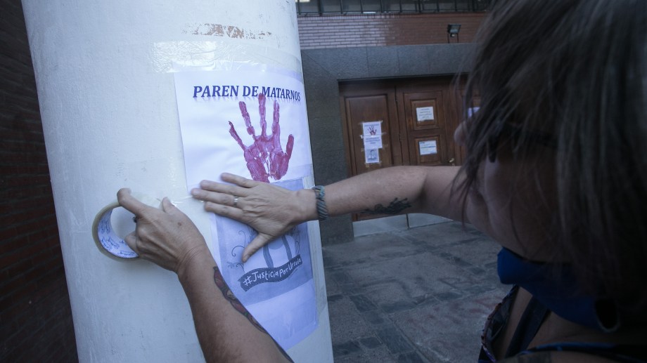 En esas dos instituciones, las mujeres autoconvocadas pegaron carteles con leyendas «Paren de matarnos», «Reforma con perspectiva de género de las Fuerza Policiales» y la imagen de Úrsula.