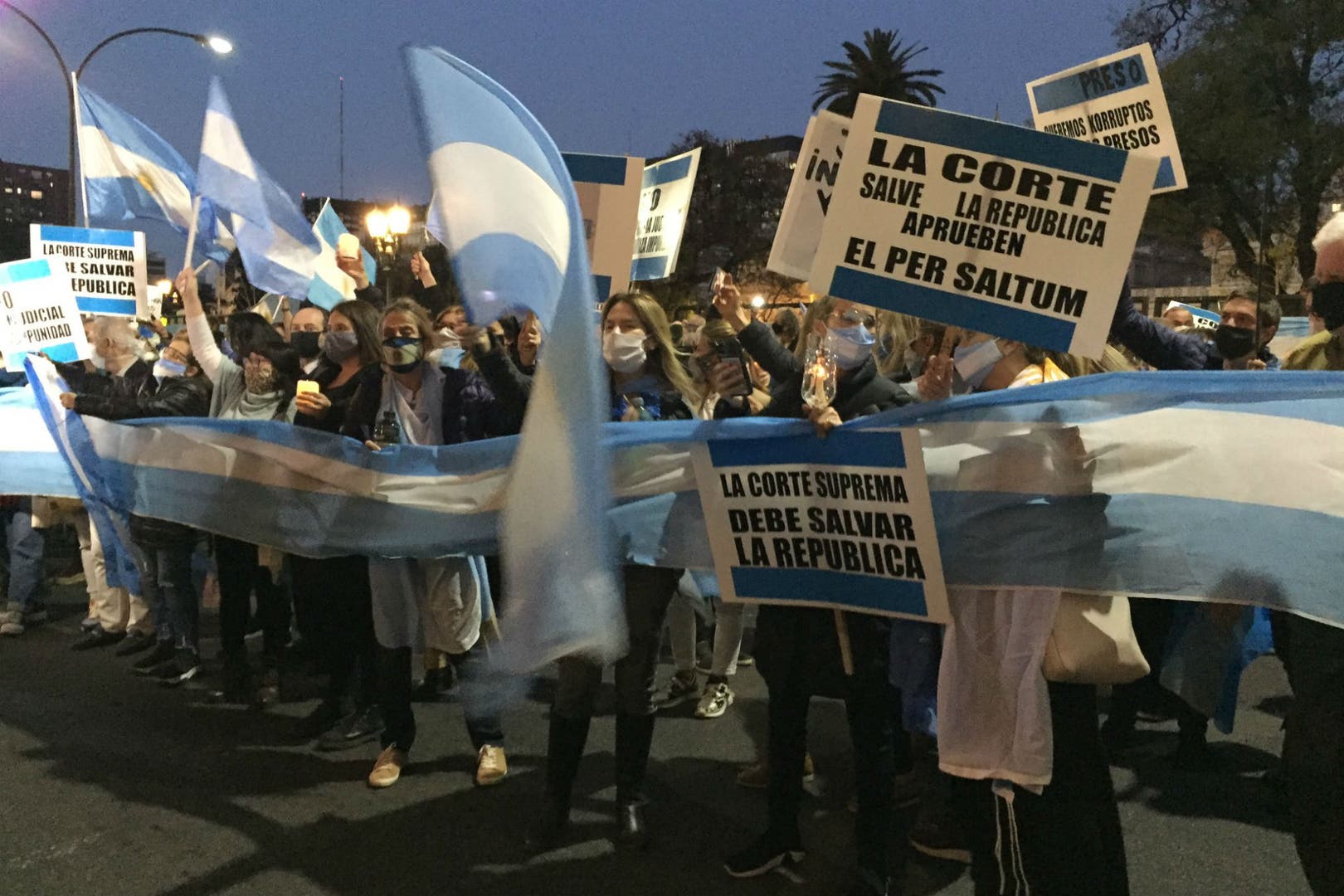 La manifestación surge en defensa de los jueces Leopoldo Bruglia, Pablo Bertuzzi y Germán Castelli, desplazados de tribunales federales luego de haber investigado a la vicepresidenta Cristina Kirchner y a ex funcionarios en casos de corrupción de la Causa Cuadernos.