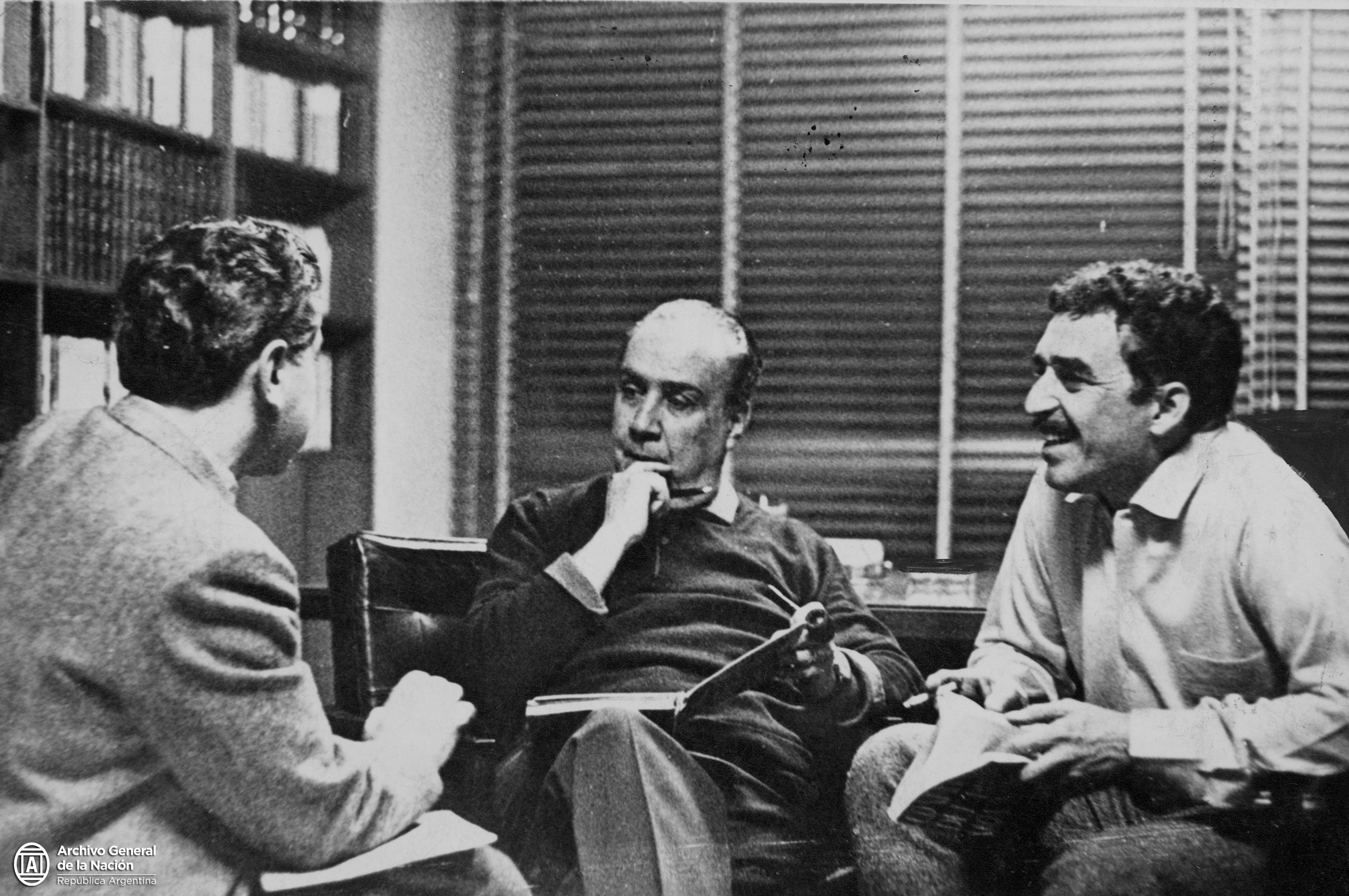 Cumbre literaria de las Américas. Leopoldo Marcheal, entre Augusto Roa Bastos y Gabriel García Márquez.