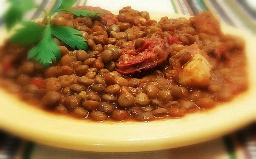 Un humeante guiso de lentejas.