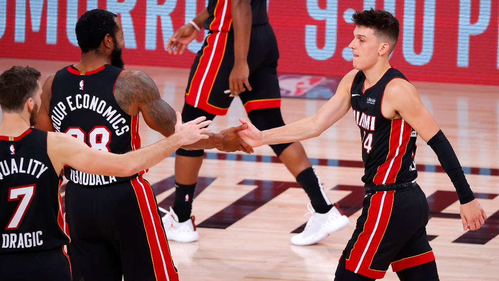 Herro, nacido en Milwaukee y con 1,96 metros de estatura, acertó 9-11 en dobles, 5-10 en triples y 4-4 en libres y se convirtió en el segundo jugador de 20 años en la historia de los playoffs de la NBA al anotar al menos 37 puntos en un juego.