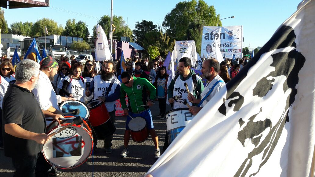 Reclamaron paritarias nacionales y recomposición salarial. Dos columnas partieron del aeropuerto y de la Textil Neuquén y se reunieron frente a la Casa de Gobierno.