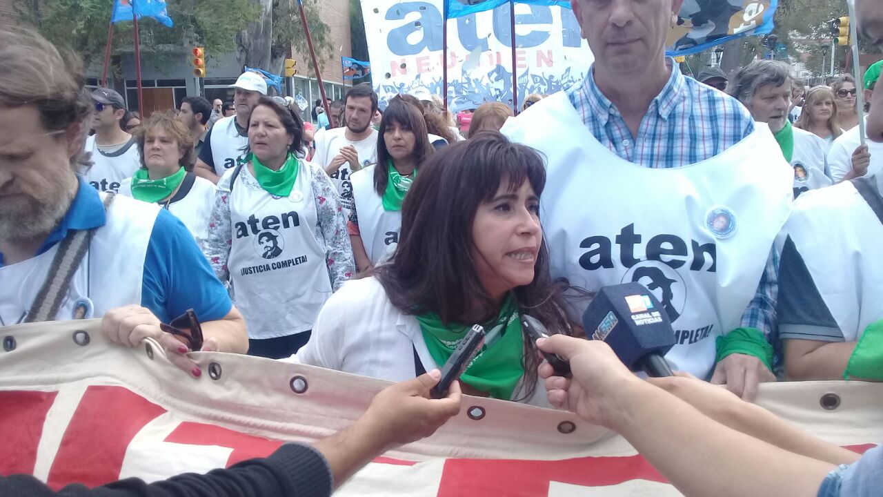 Cuando comenzó la movilización, Sandra Rodríguez saludó a quienes encabezaban la marcha y luego fue parte de la extensa columna que descendió por Avenida Argentina. Sandra era la pareja de Fuentealba cuando murió por un disparo de gas lacrimógeno durante la represión de una protesta sobre la Ruta 22, en Arroyito. La autoría material del asesinato recayó en el cabo José Darío Poblete que fue condenado a prisión perpetua en 2008.