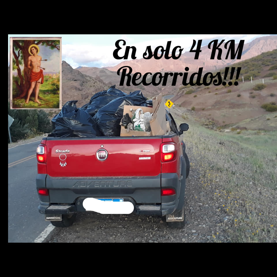 La promesa consiste en levantar los residuos que encuentren a los costados de la ruta entre Andacollo y Las Ovejas. Un recorrido que se puede hacer en poco más de media hora en un auto, a ellos le llevará horas y esa sensación agridulce que les causa ver que la basura es mucha más de la que esperaban, pero sus vecinos apoyan su causa.
