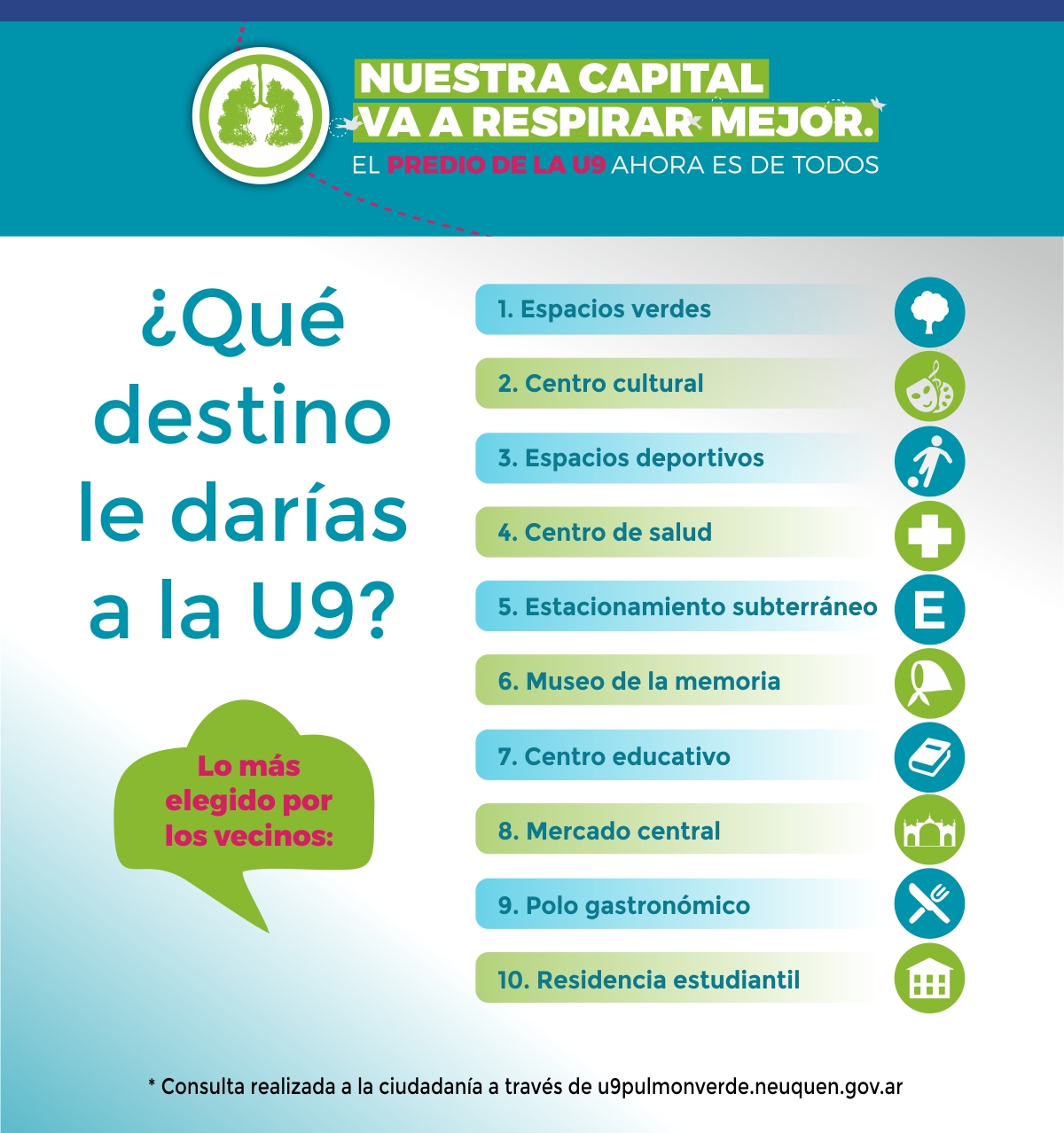 Los espacios verdes y deportivos lideraron el ranking de los proyectos presentados en la “cumbre ciudadana” durante la convocatoria de “Pulmón verde” que hizo el gobierno de la provincia.