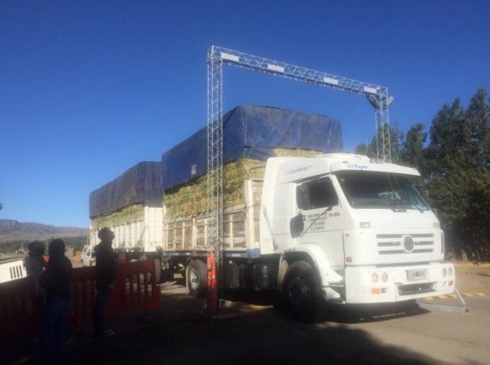 El gran invento es tan sencillo como efectivo. Se trata de una estructura de hierro con aspersores dentro. Los camiones pasan por abajo y son rociados para su desinfección.