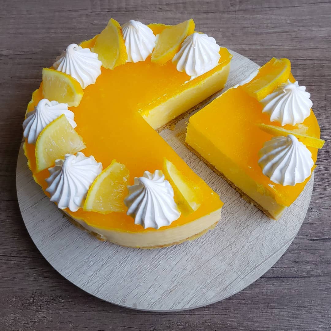 En un bol batir la crema hasta medio punto y agregar la crema de limón. Seguir batiendo hasta integrar bien. Colocar el relleno sobre la base de galletitas y enfríar. Una vez que el relleno este firme, preparar la gelatina de limón (agregar el agua hirviendo a la gelatina y revolver hasta que se disuelva toda la gelatina) y agregar por encima. Volver a enfríar. Decorar con picos de crema chantilly o merengue y gajos de limón.