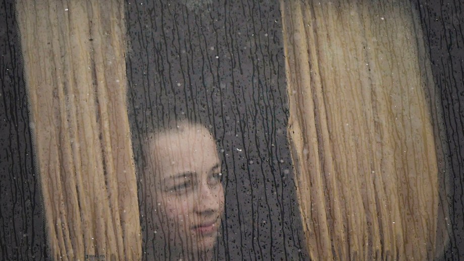 Una mujer envuelta en una manta térmica que huye de Ucrania, espera subir a un autobús en el cruce fronterizo de Medyka.Foto AP