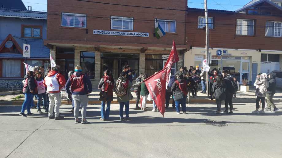 Acompañados por estudiantes y docentes, integrantes de ATE y Unter reclamaron frente al Consejo Escolar de la Zona Andina por la aparición de roedores en la escuela 185, la secundaria 33 y 44 y los jardines 3 y 56 en las últimas dos semanas.