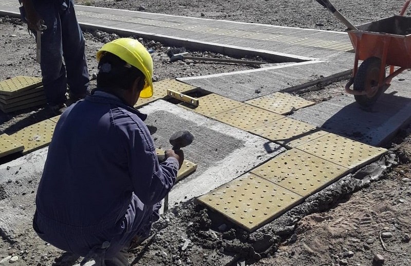 Ya hay 1.500 metros lineales de vereda terminados. La obra está destinada a personas con discapacidad visual en la zona norte de la ciudad.