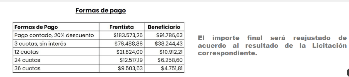 Remarcó que existen facilidades de pago con un interés de, 2,5% y con un descuento del 20% en caso de pago contado. «estamos ofreciendo todas las opciones posibles, son obras que nos parecen importantes concretar».