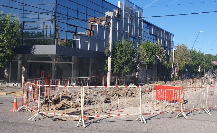 Tránsito afectado en pleno centro de Roca por un recambio de cañería