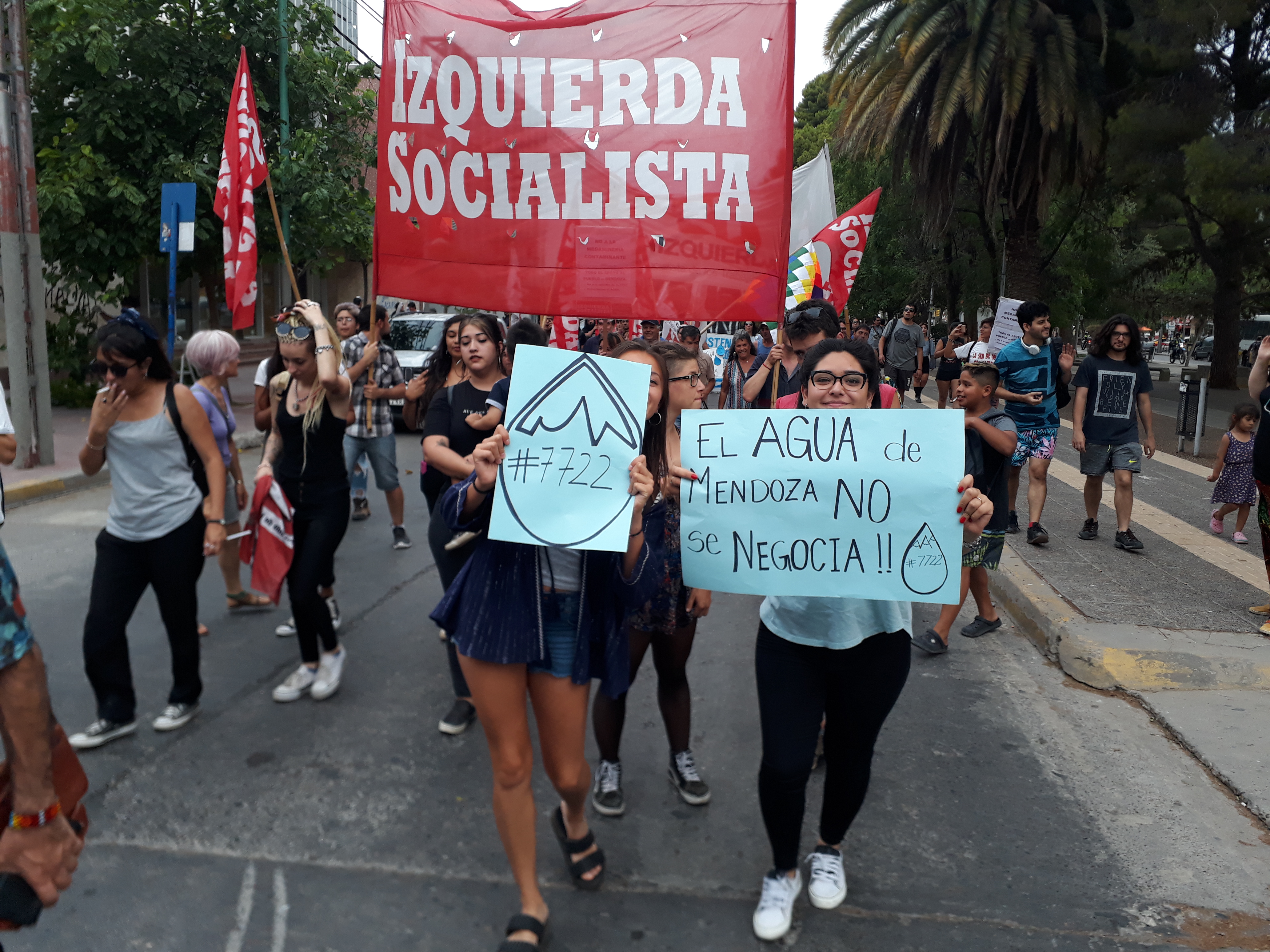 Organizaciones sociales y ambientalistas se manifestaron en el centro de la ciudad en oposición a la modificación de la ley 7722 en Mendoza. La marcha finalizó con una intervención artística en Casa de Gobierno.