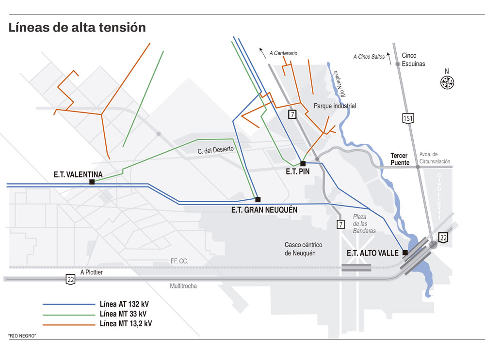 El proyecto del MPN para enterrar las líneas de alta y media tensión que atraviesan la ciudad desde los barrios del oeste hasta la Autovía Norte o hacia el río Neuquén, en la confluencia neuquina, está a las puertas de conseguir financiamiento del BID para iniciar la etapa de formulación de proyecto licitatorio.