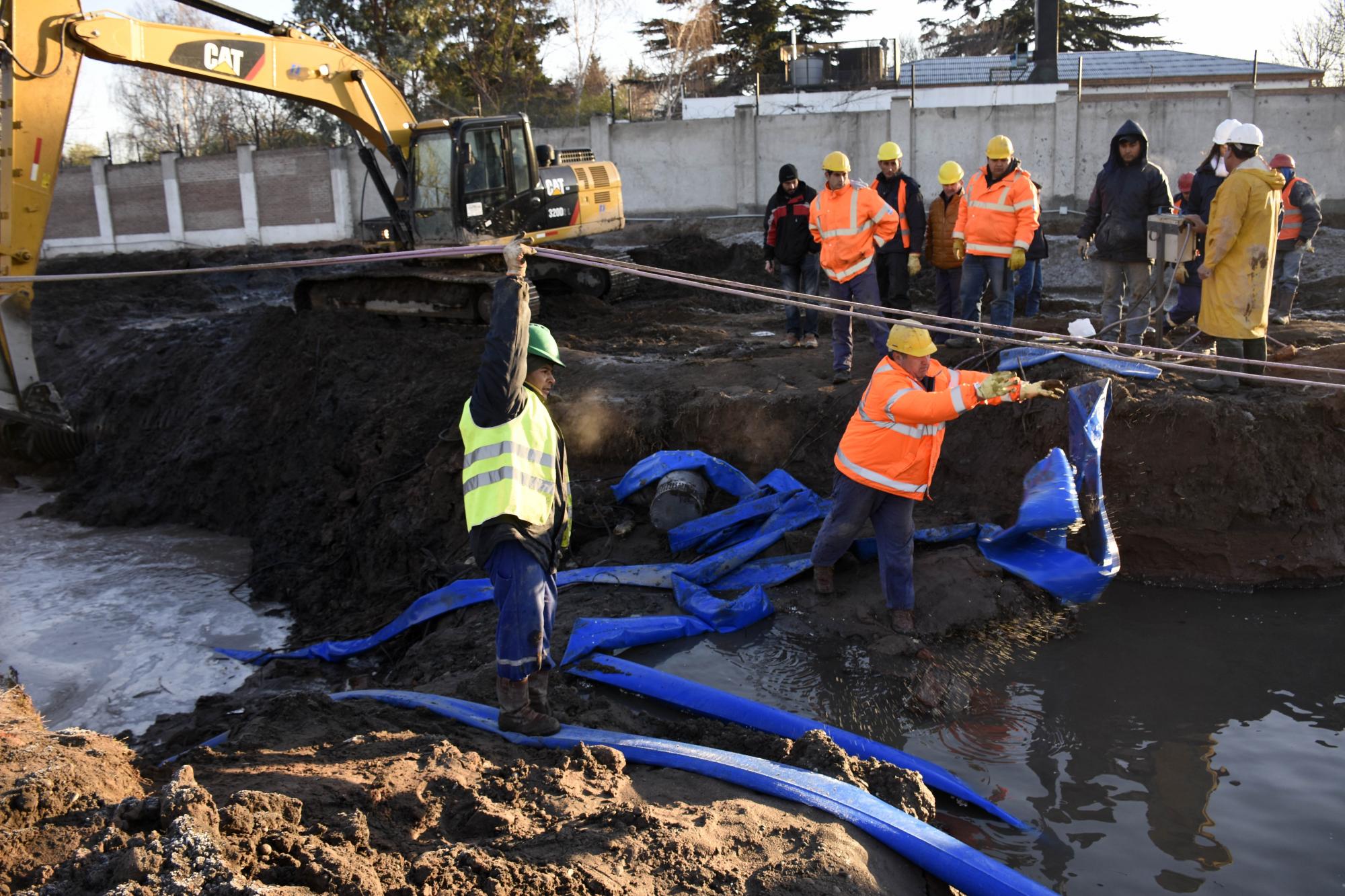 Luego quedó una “pileta” que se tuvo que bombear “para poder descubrir el fondo y comenzar las excavaciones para llegar a la cañería de hierro fundido de unos 60 centímetros de diámetro”.