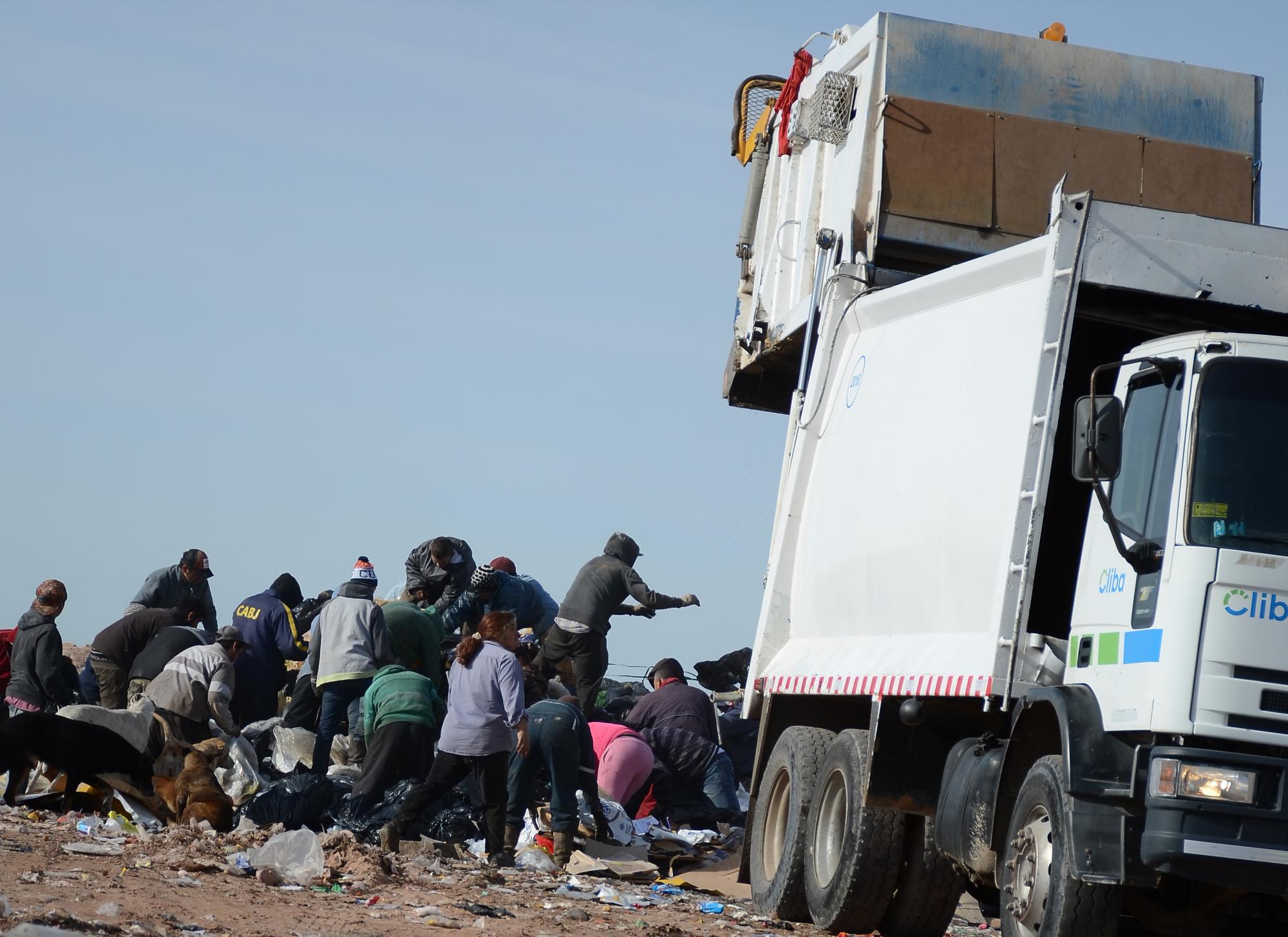 Ante cada camión recolector que deja los residuos en el campo del CAN, una marea de hombres, mujeres y adolescentes se abalanzan en los costados y pocos espacios libres del camión en procura del mejor lugar para lograr el botín: la separación en destino de la basura la siguen realizando los recolectores informales que viven en la meseta.