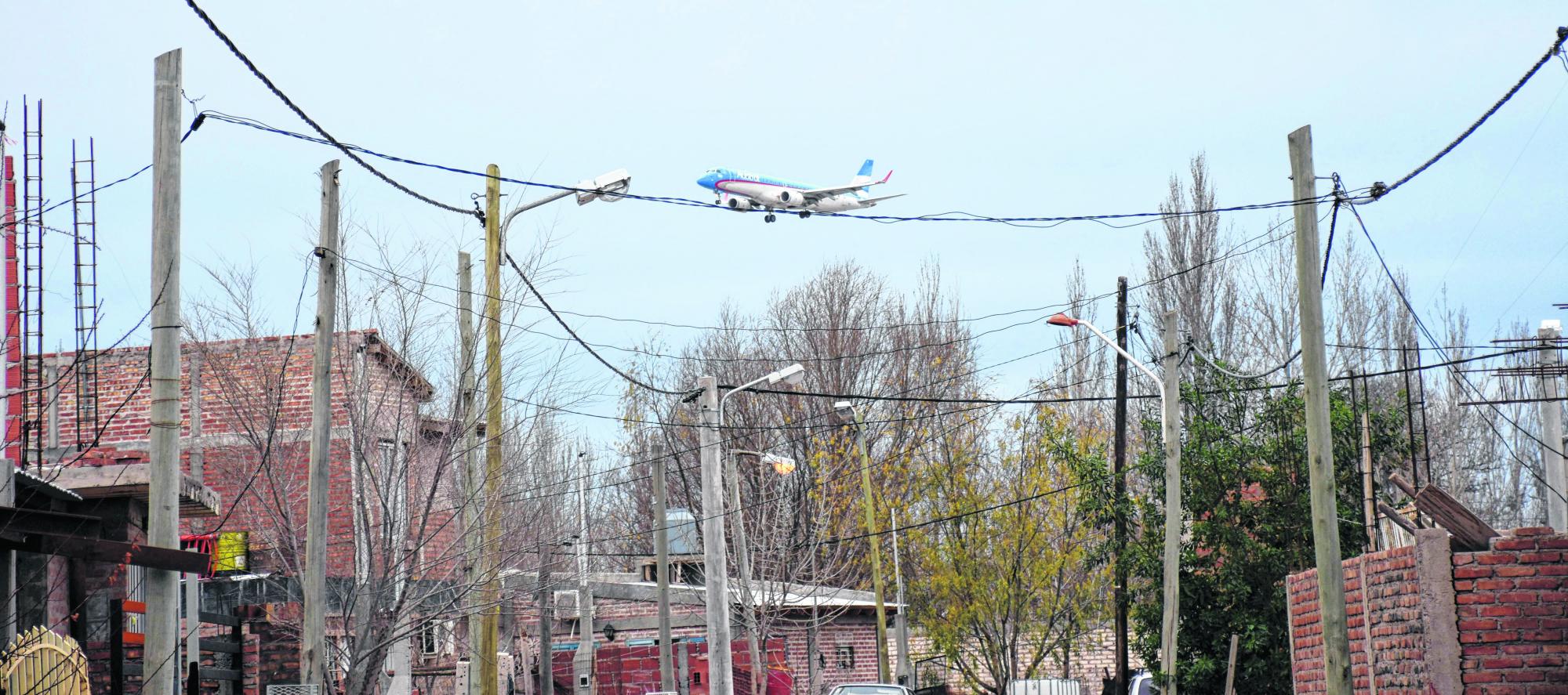 En el otro sector lindante, el barrio Aeropuerto, los aviones transitan por el costado.
