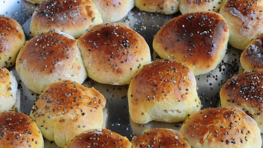 Amasar sobre la mesa apenas enharinada. Dar forma de bollo, cubrir con polietileno y dejar descansar sobre la mesa durante 40 minutos. Dividir la masa en porciones de 30 gramos y bollar. Luego alargar ligeramente las puntas. Ubicar sobre placas enmantecadas, cubrir y dejar leudar al doble. Pintar con huevo batido y hornear a 220° C durante 20 minutos.