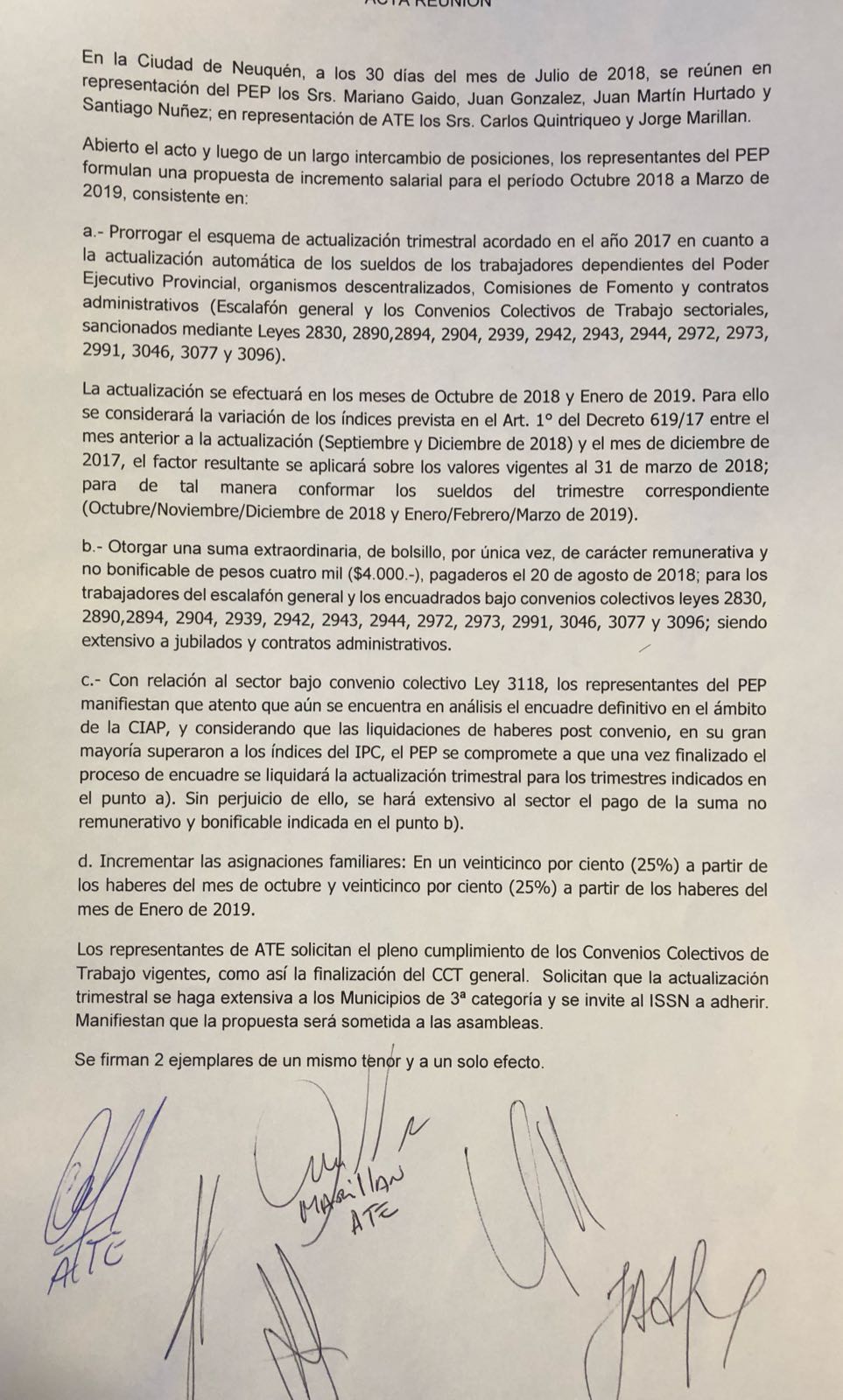 Los estatales de Neuquén mantuvieron el acuerdo al que llegaron el año pasado por el cual reciben aumentos salariales cada trimestre en base a la inflación, a lo que se sumó un bono de $4000 por única vez y el aumento del 50% de las asignaciones familiares.