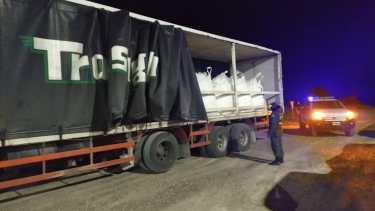 Durante la requisa se comprobó que transportaba 22 bolsones con 1250 kilos cada uno de carbonato de sodio, con un peso total de 27.500 kilogramos sin la documentación legal y respaldatoria que exige la normativa vigente.