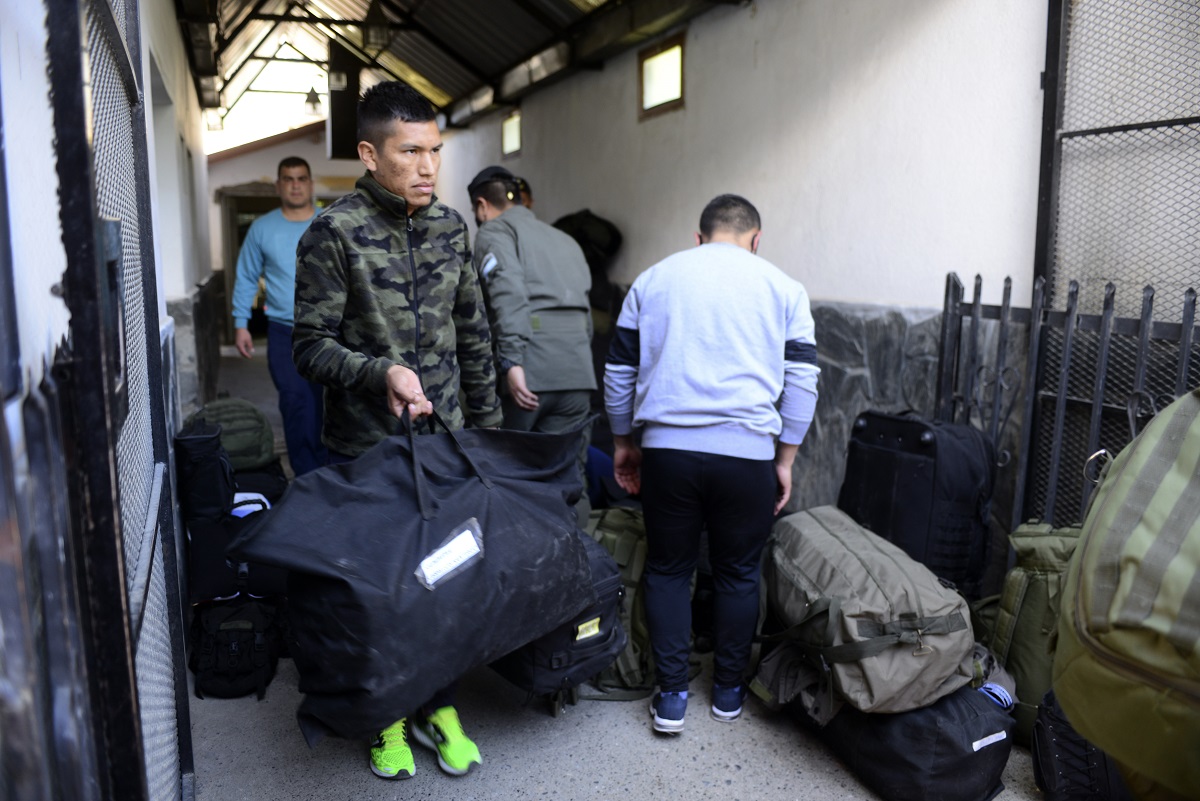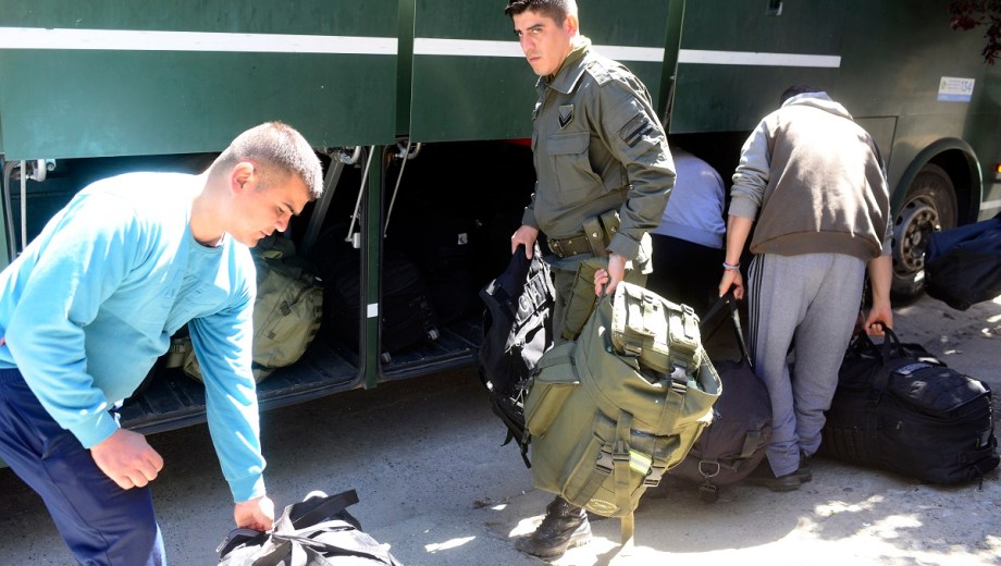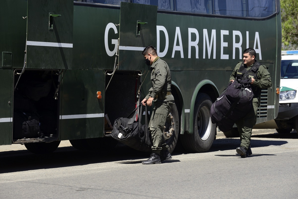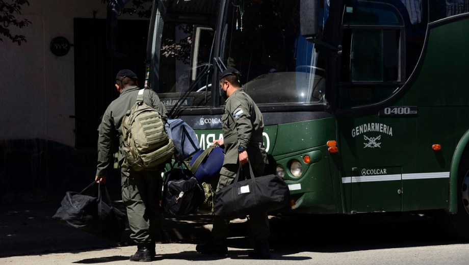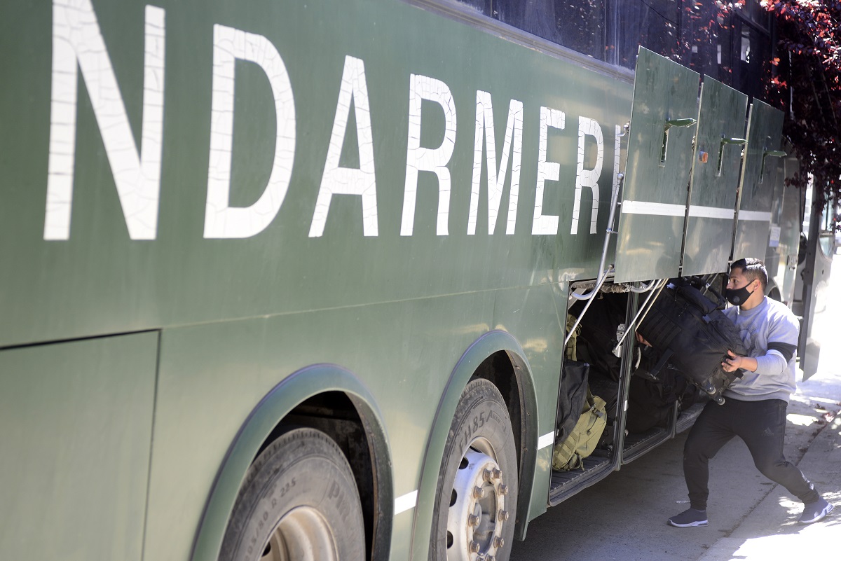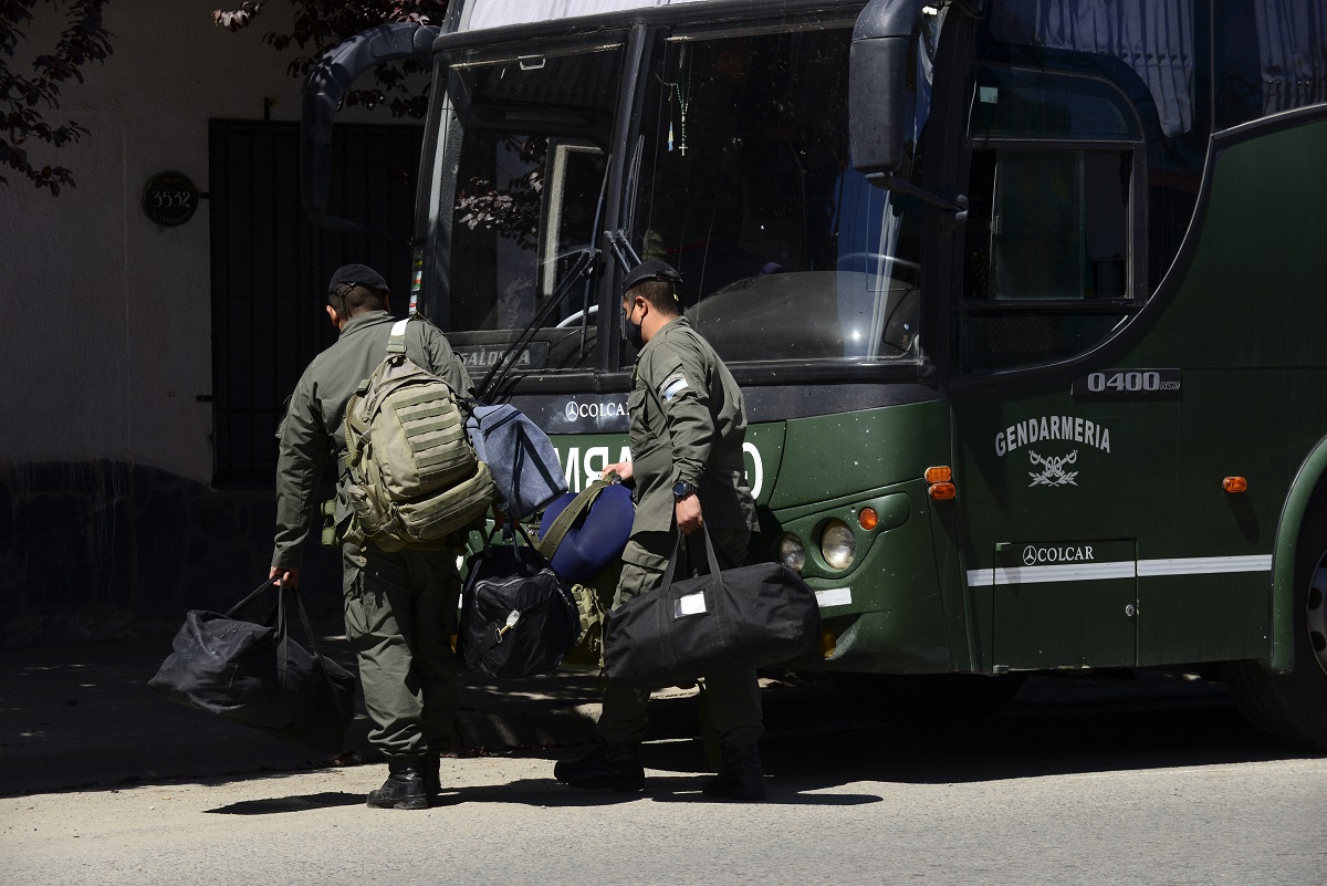 Ayer a las 13, un grupo de gendarmes acomodaba sus bolsos y pertrechos en un colectivo de la fuerza que los esperaba en la avenida Sarmiento. Ninguno pronunció una palabra. Acomodaban sus cosas en la bodega del ómnibus y subían a ubicarse en sus butacas. Un gendarme de gran porte y robusto salió a explicar que no tenían autorización para hablar con la prensa y con respeto solicitó mantener la distancia.