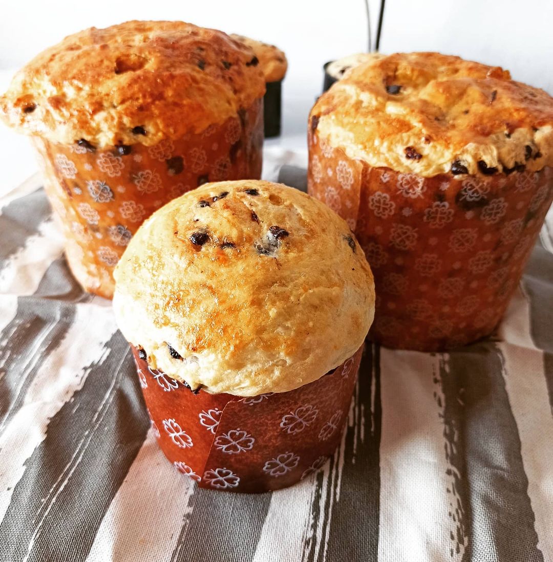 Dividir los bollos y poner en los moldes para pan dulce. Dejar descansar nuevamente tapados hasta que leven a 3/4 partes del molde. Pintar con huevo batido con una cucharada de azúcar. Llevar a horno precalentado a 180° C por unos 35 minutos aproximadamente para los de 500 g y 20 minutos para los de 250 g.