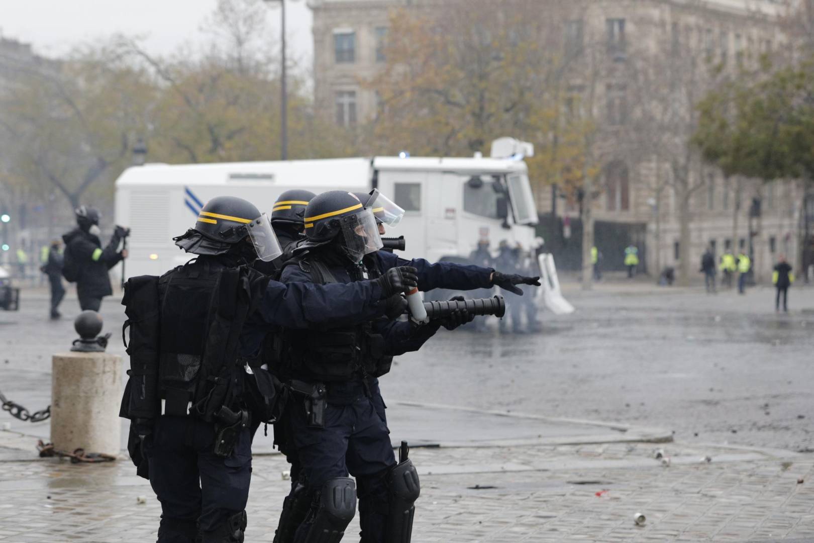 A media jornada, los enfrentamientos se produjeron en torno al Arco de Triunfo entre policías y manifestantes, algunos de ellos enmascarados, envueltos en nubes de gases lacrimógenos y humaredas de material urbano y contenedores de basura incendiados. Más de 120 de personas fueron detenidas, según el primer ministro francés, Édouard Philippe, que se desplazó a la prefectura de la policía de Paris para seguir los acontecimientos.