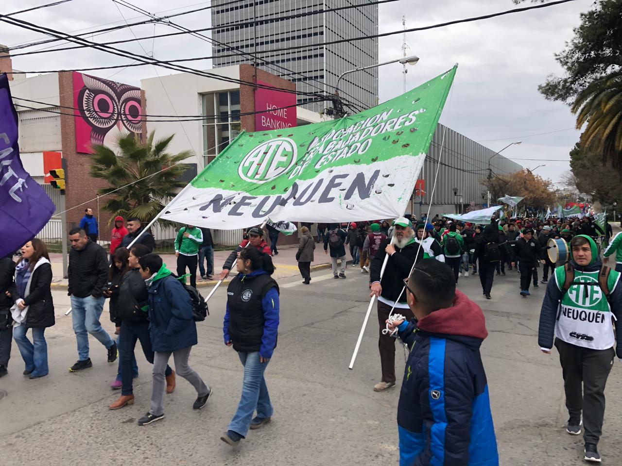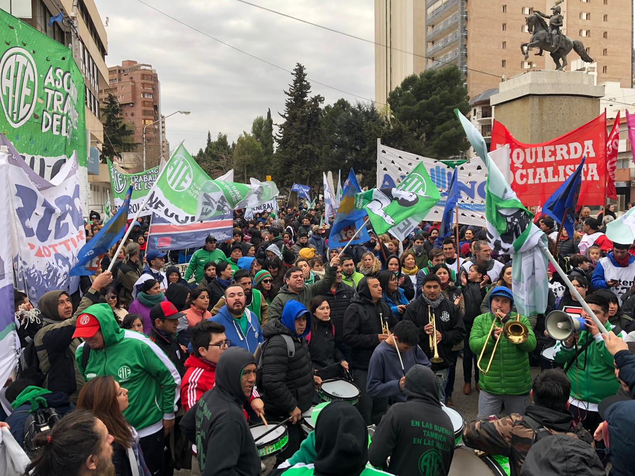Luego se sumaron la Asociación de Trabajadores del Estado (ATE) y la de Docentes de la Universidad Nacional del Comahue (Adunc), que también participaron de la protesta en el centro.