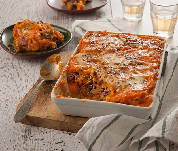 Pastel de boniato con carne braseada