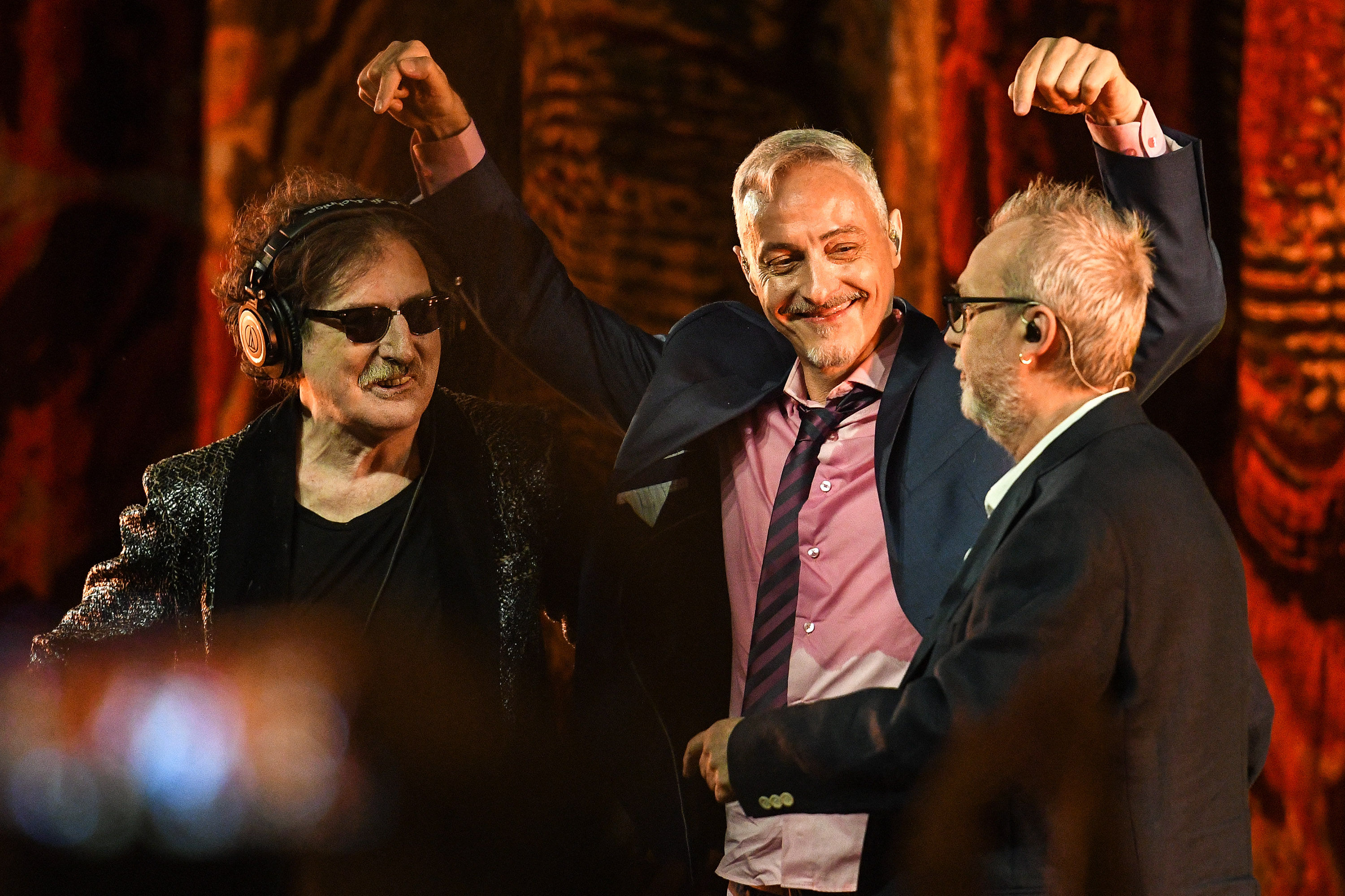Con Charly García y David Lebón, un cortísimo reencuentro de Serú Girán.