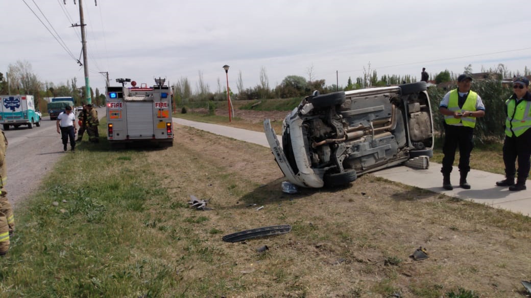 Un accidente con vuelco ocurrió cerca del mediodía de este miércoles, sobre la Ruta 65, a la altura de Fernández Oro, en el derivador de ingreso a la localidad.