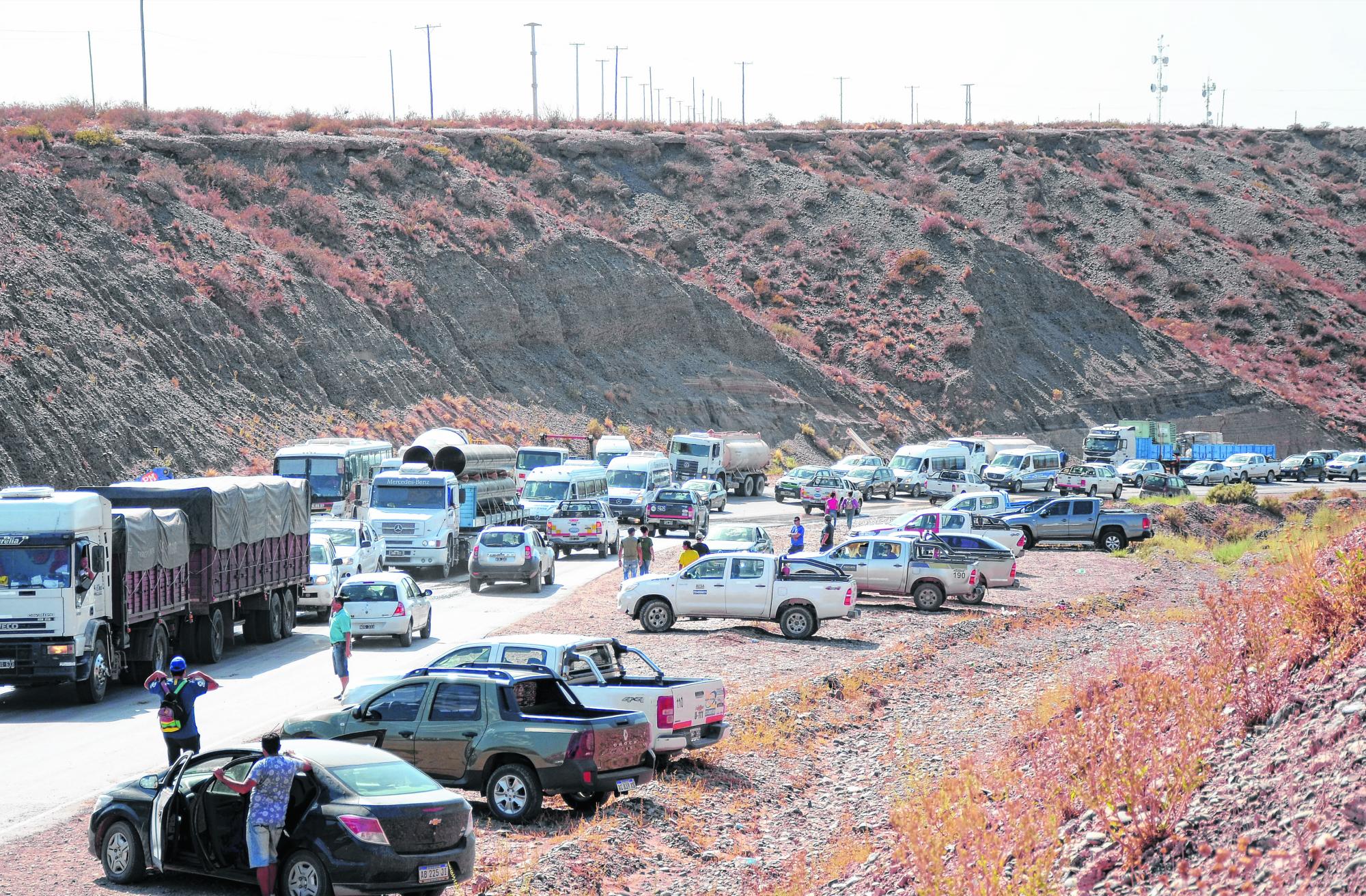 Durante tres horas de la franja horaria más caliente de la zona congelaron las actividades y el tránsito pesado del área. La banquina de la Ruta Provincial 7 se pobló de camionetas, colectivos de larga distancia, vehículos particulares y hasta de taxis que vinieron desde varias localidades hasta Añelo.