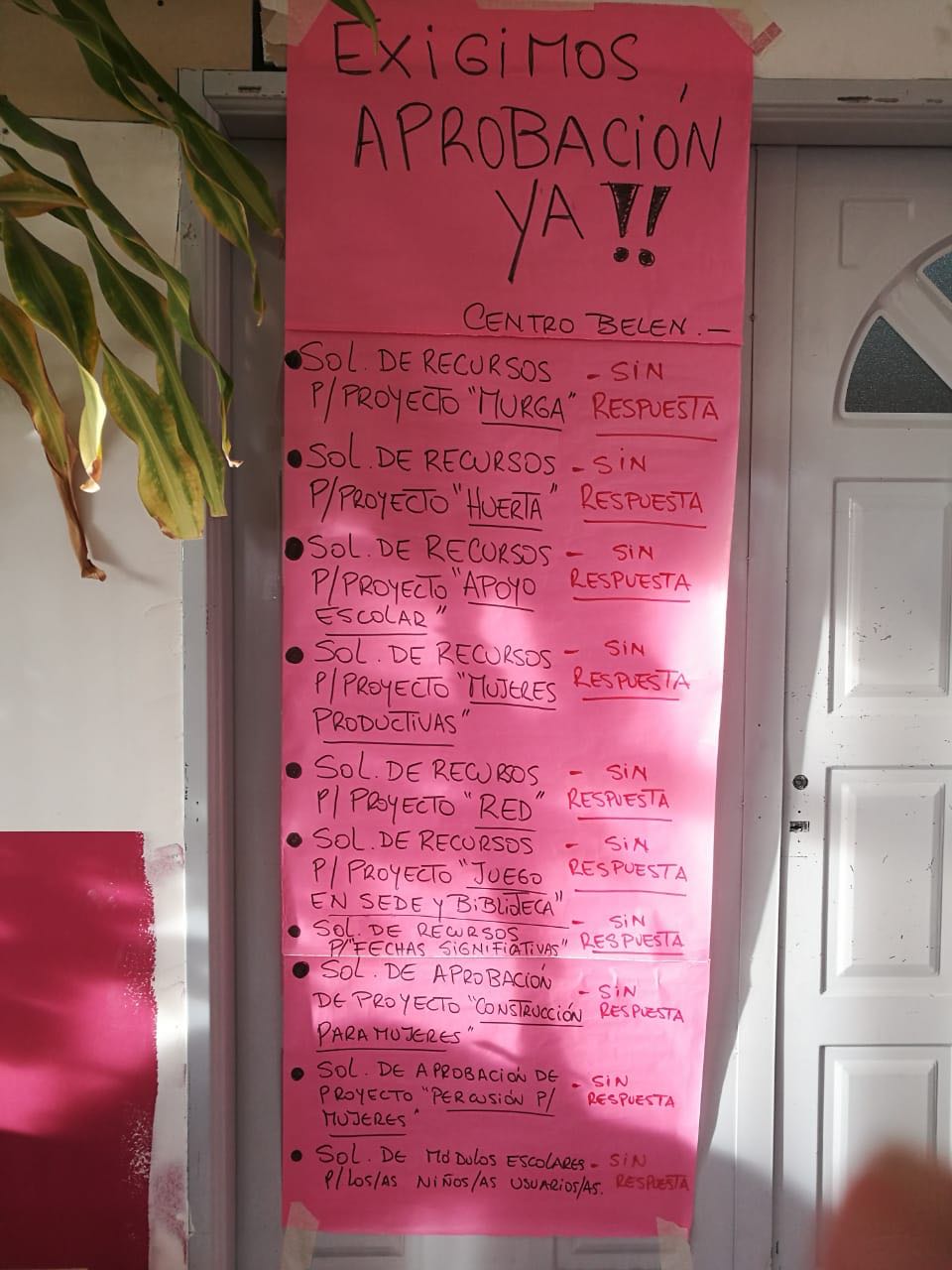 Ante esta situación, personal de los refugios, familias solidarias, servicio de violencia, centros de abordaje, libertad asistida y centro de coordinación comunitaria Belén comenzaron a realizar medidas de fuerza reclamando respuestas a Mariano Gaido, el ministro de Desarrollo Social.