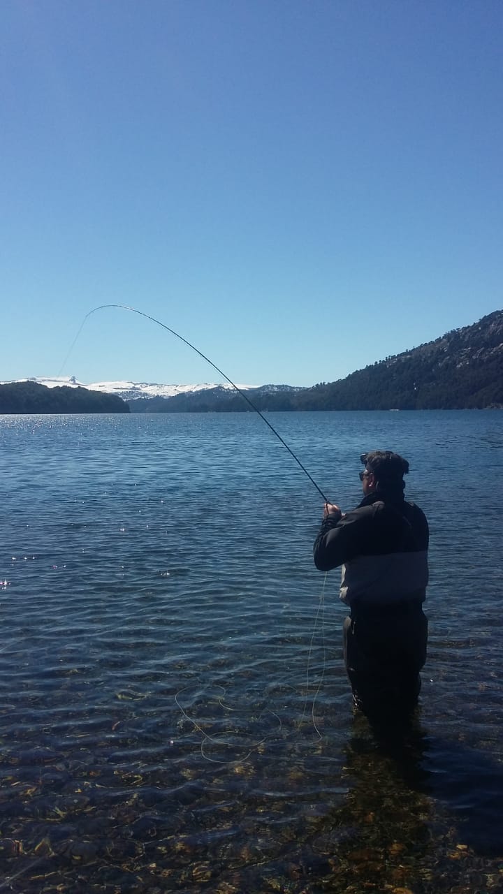 Tuvimos excelentes respuestas en los profundos veriles del lago Moquehue con truchas muy potentes tanto arco iris cómo fontinalis. Eran truchas de muy buenos portes y usamos moscas de gran volumen en colores oscuros.