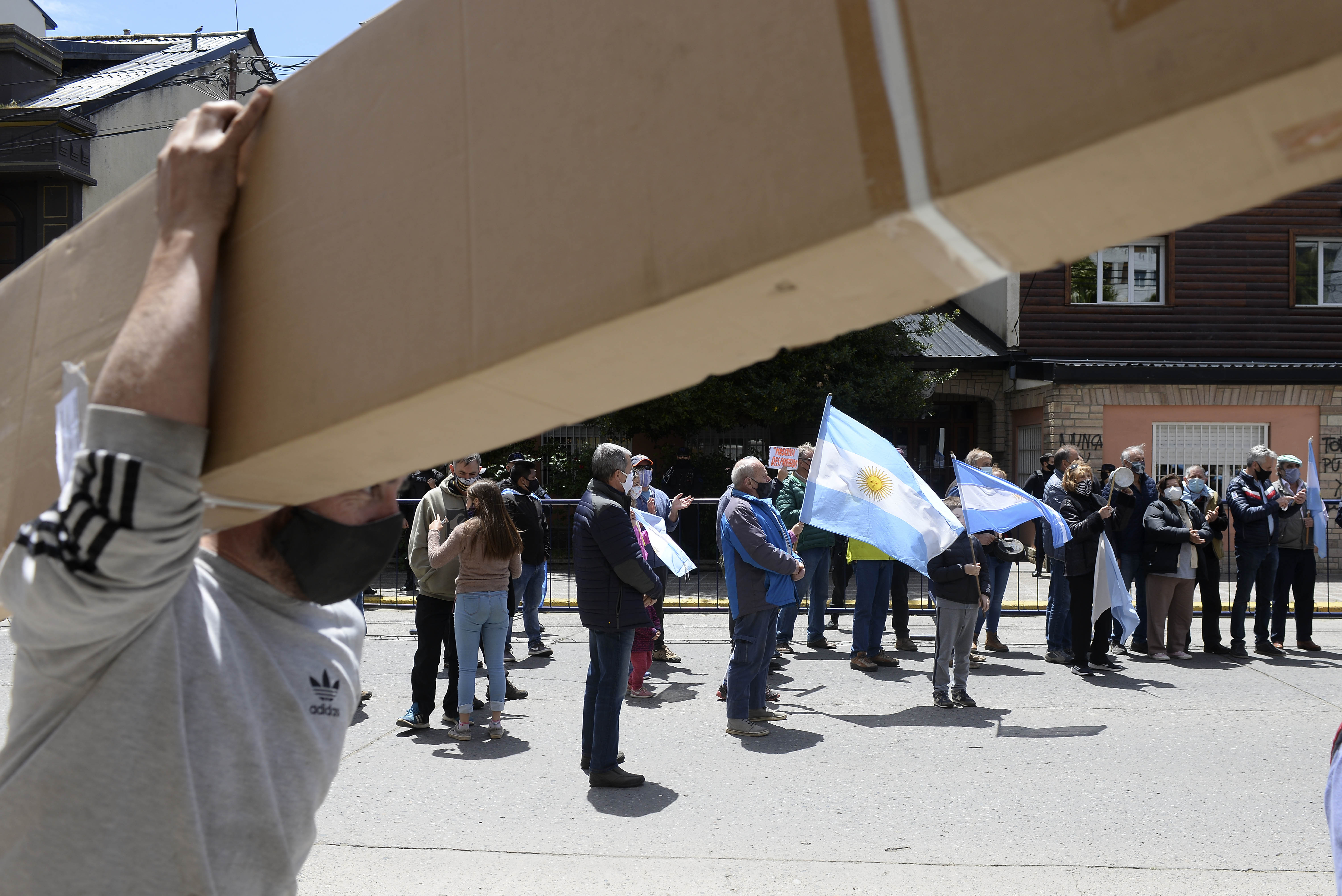 En la concentración participaron varios empresarios, el abogado Ernesto Saavedra (expatrocinante en otra causa de desalojo que tramita en la justicia provincial), se sumaron varios participantes de otras marchas anteriores convocadas “en defensa de la propiedad pública y privada” y también vecinos de Virgen Misionera, donde tienen domicilio original muchos de los integrantes de la lof asentada ahora en Mascardi.