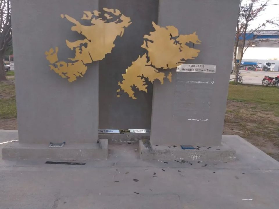 Desde el municipio de Cinco Saltos repudiaron los hechos vandálicos que dañaron el monumento. El hecho ocurrió en la Plaza Islas Malvinas Argentinas ubicada entre Yrigoyen y Saavedra.