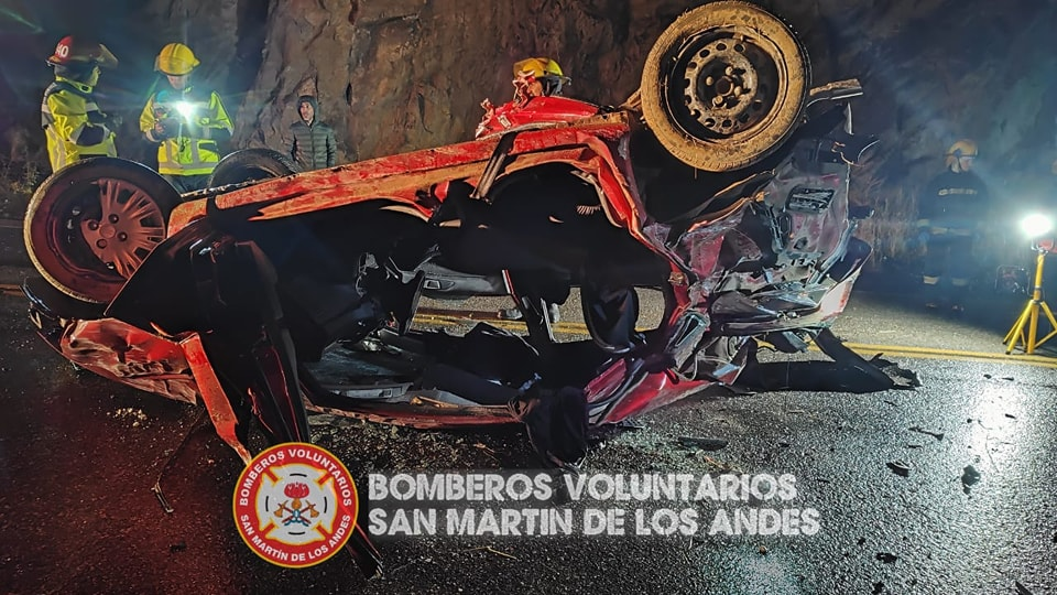 El hecho ocurrió cerca de las 6.30, cuando un Ford Fiesta, por razones que aún se desconocen, se dirigía hacia Villa la Angostura por la ruta Siete Lagos y volcó quedando con las cuatro ruedas hacia arriba.