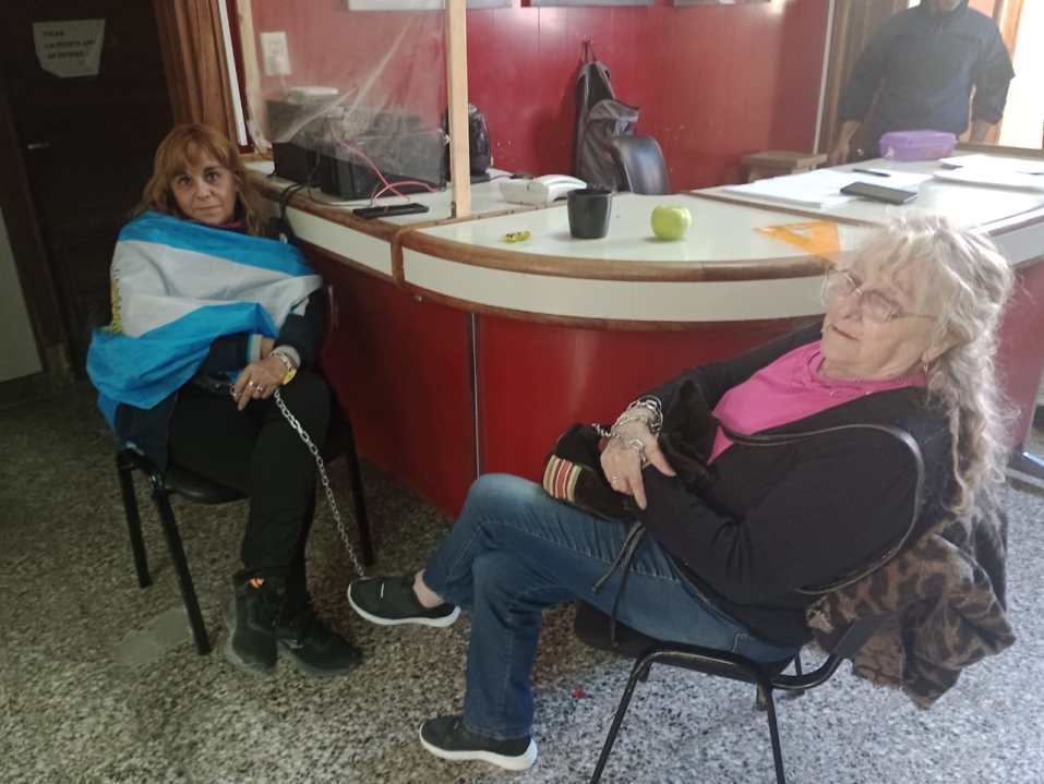 Debido a las «amenazas», una serie de personas decidieron encadenarse a modo de reclamo. En la unidad Quinta «la esposa de un policía se encadenó junto a una compañera activa», apuntó Muñoz.. En Roca hay dos policías que se encadenaron en la Unidad Regional II.