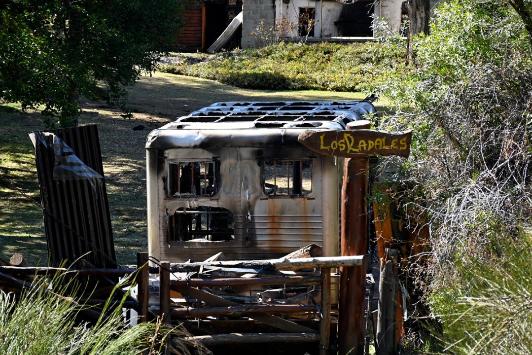 Hoy en el predio de la última tierra usurpada, propiedad de Luis Dates, la tranquera de madera del acceso, ubicada a unos metros de la ruta 40, se encontraba cerrada. En el lugar se colocó una chapa negra y se arrimó la casilla calcinada -que pertenecía a Gendarmería Nacional- que fue afectada por el incendio del domingo a la noche.