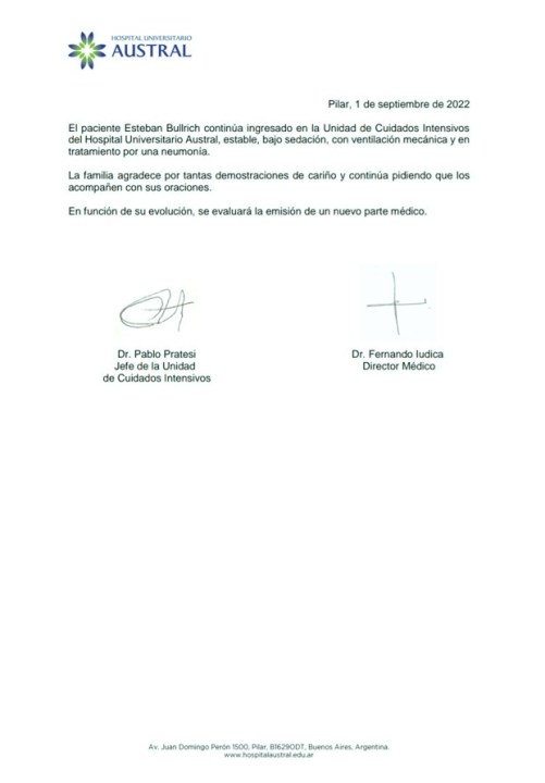 Cuál es el estado de salud de Esteban Bullrich